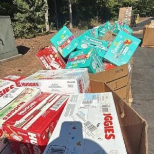 📦 Plus de 90 boîtes de couches par palette (marques et tailles variées)